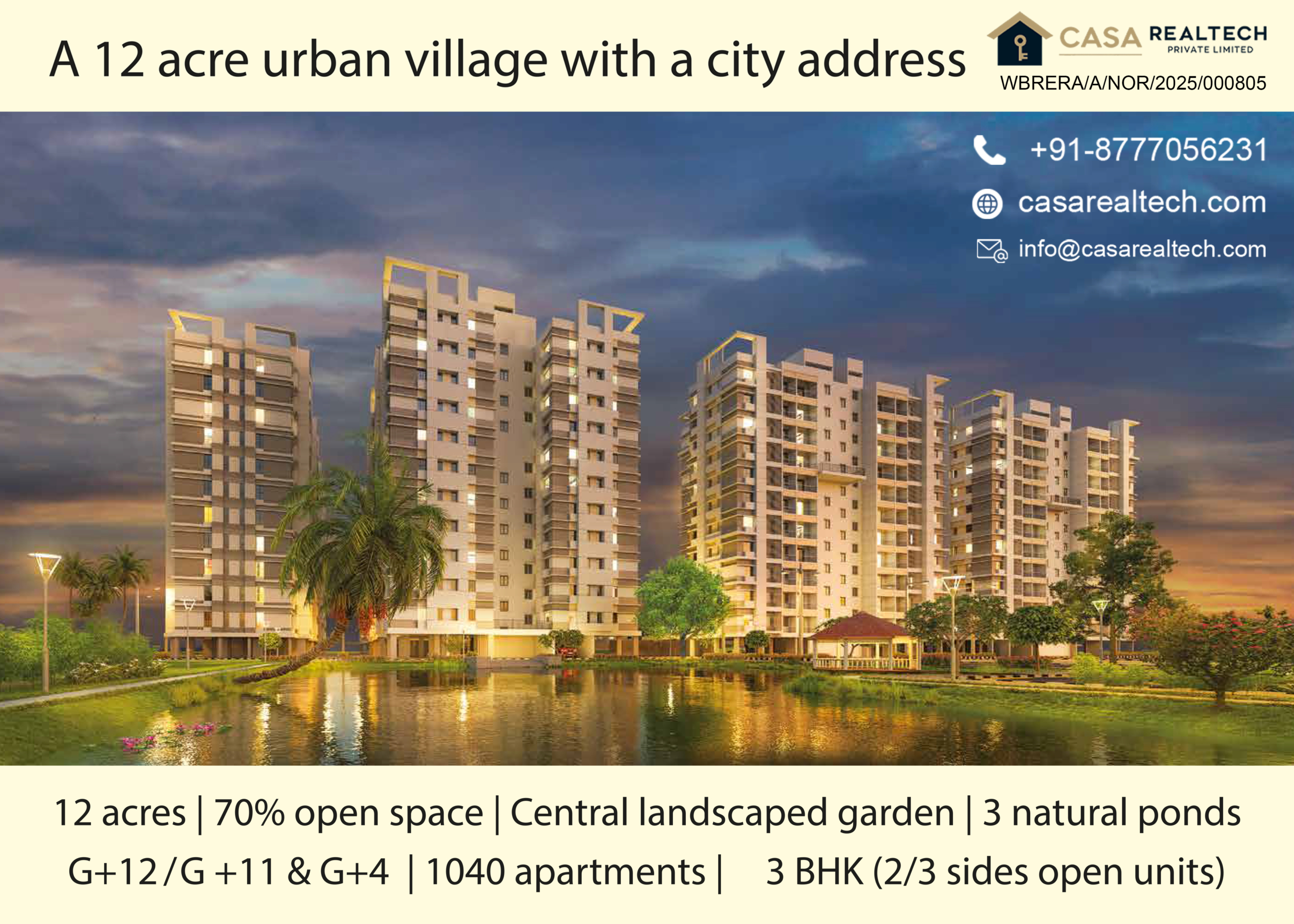 This is a project where modern design meets Bengal’s rich artistic heritage. Nestled within sun-drenched greenery and manicured gardens, these 2 & 3 BHK residences offer a rare blend of urban convenience and serene luxury. With expansive living spaces, an infinity pool, and state-of-the-art amenities, it’s a sanctuary designed to elevate modern living in the heart of the city.